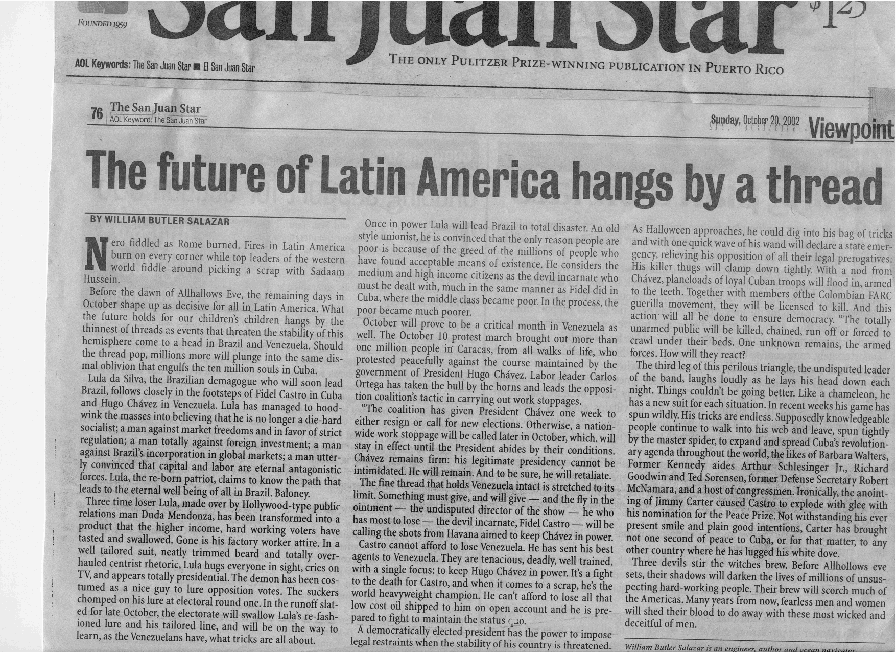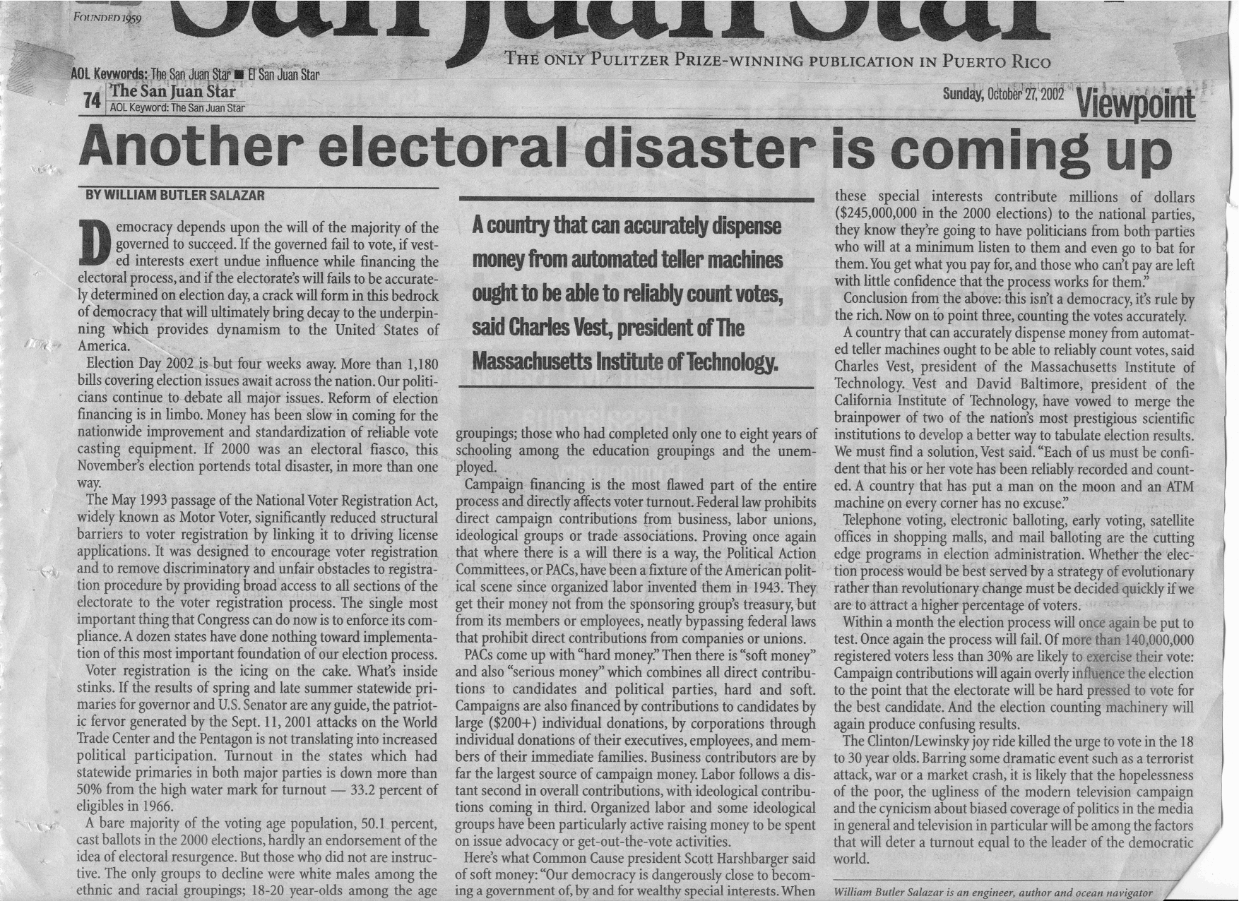 | Another Electoral Disaster is coming up - October 27, 2002 |