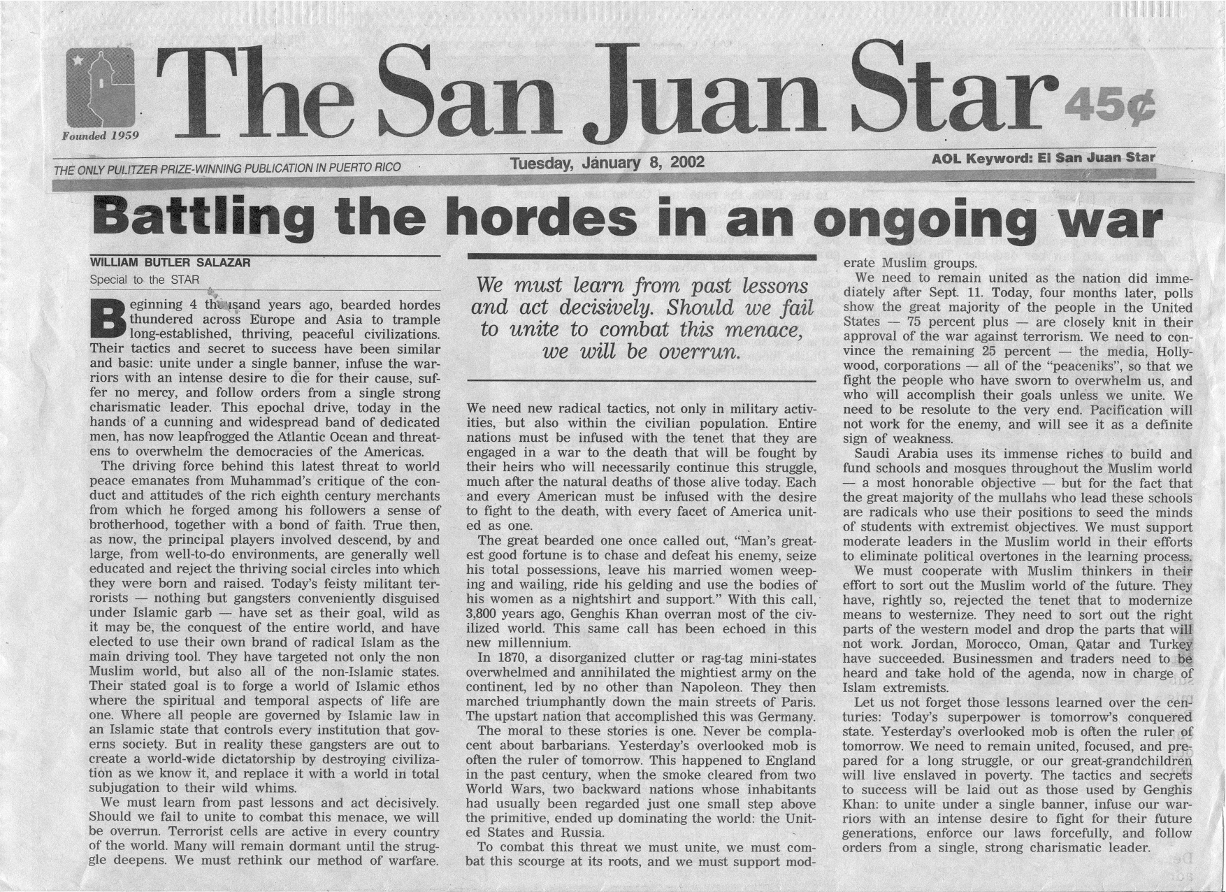 | Battling the Horges in an Ongoing War - January 8, 2002 |